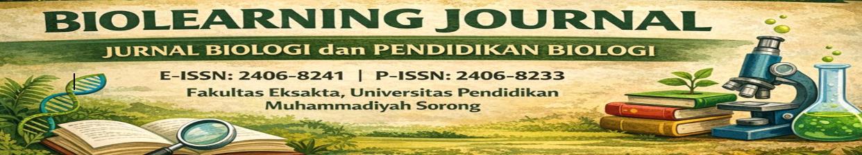 Biolearning Journal is a container of scientific publications with a scientific scope that is the science of education and the science of biology and all things related to science and directly related to the application of the science of education and biological sciences. Biolearning Journal is published twice per year. The Purpose of Biolearning Journal: As a Media Information to meet the needs of the community in finding new innovations around the world of science education and biological sciences as well as all things related to science and directly related to the application of education and biological sciences. Biolearning Journal is one of the journals under the auspices of the Muhammadiyah Education University (UNIMUDA) Sorong.